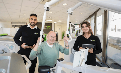 Een jaar later kwam er de diagnose Parkinson overheen. 'Waarschijnlijk getriggerd doordat ik een tijd aan die machine heb gelegen. Toen ging ik weer de medische molen in en raakte ik in een depressie', vertelt Hans. Hij meldde zich opnieuw bij fit20, waar hij al snel weer in de ‘goede stand’ werd gezet door de studio-eigenaren en personal trainers Aakash Kapoor en Djonsi Kakar, en ervaren trainer Roy de Bruin. Zij werkten een passend trainingsschema voor Hans uit, met hulp van de expertise vanuit de fit20-franchiseorganisatie, en ze kregen hem met veel positieve aandacht en optimisme ook mentaal weer op de rit.